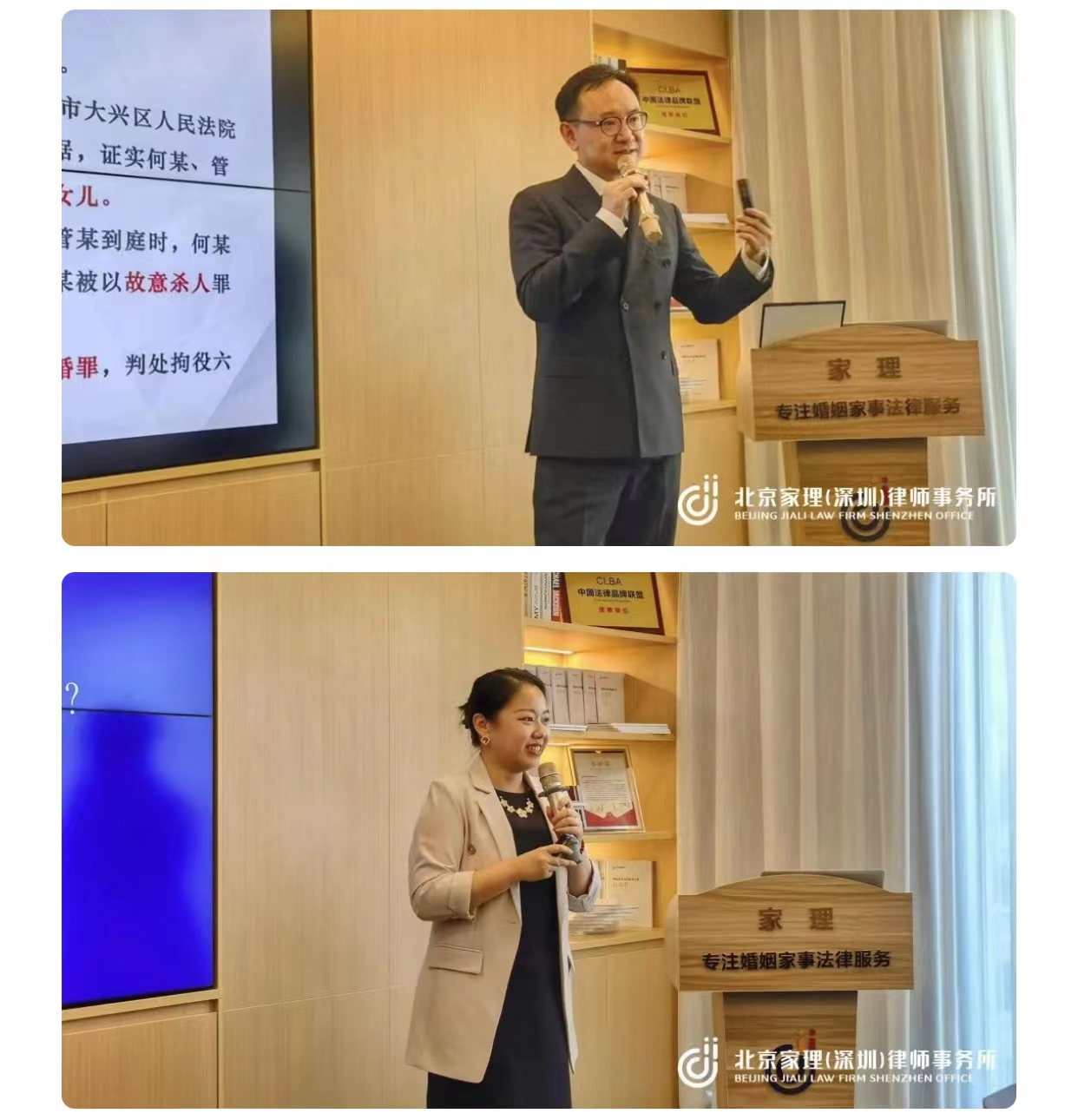 活动开始后,张宇鹏律师从重婚的涵义、重婚罪的诉讼程序、重婚罪的证据展开论述,胡梦蝶律师则从婚姻制度的变革和重婚大数据、重婚构成要件和常见形式、重婚的法律后果和举证要点、民刑诉讼中的重婚实务等几个角度进行分享。