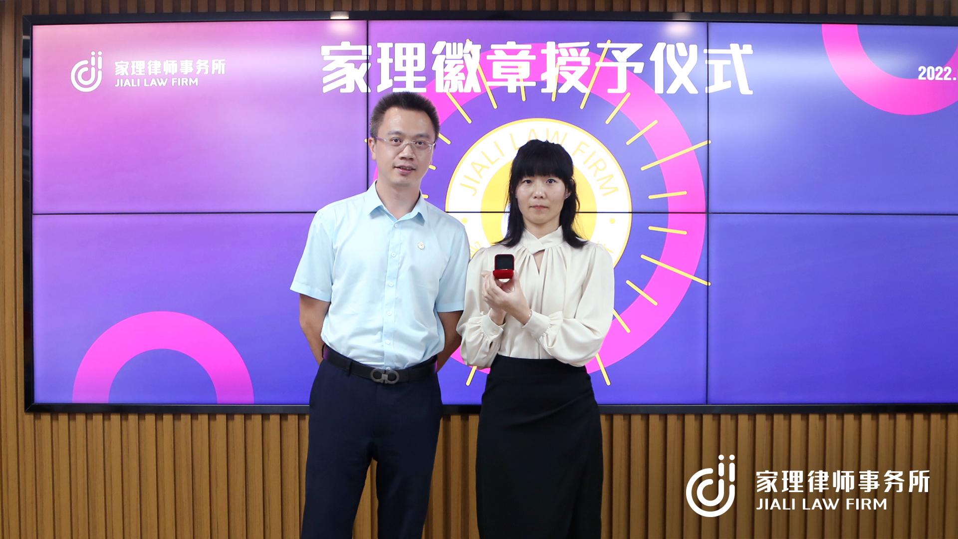 北京总部林康主任、上海分会场和昊云律师分别为总部及上海分所的转正小伙伴颁发了家理徽章。这枚徽章不仅代表了家理对小伙伴的认可与信任,更代表了小伙伴从此要承担更多的责任。