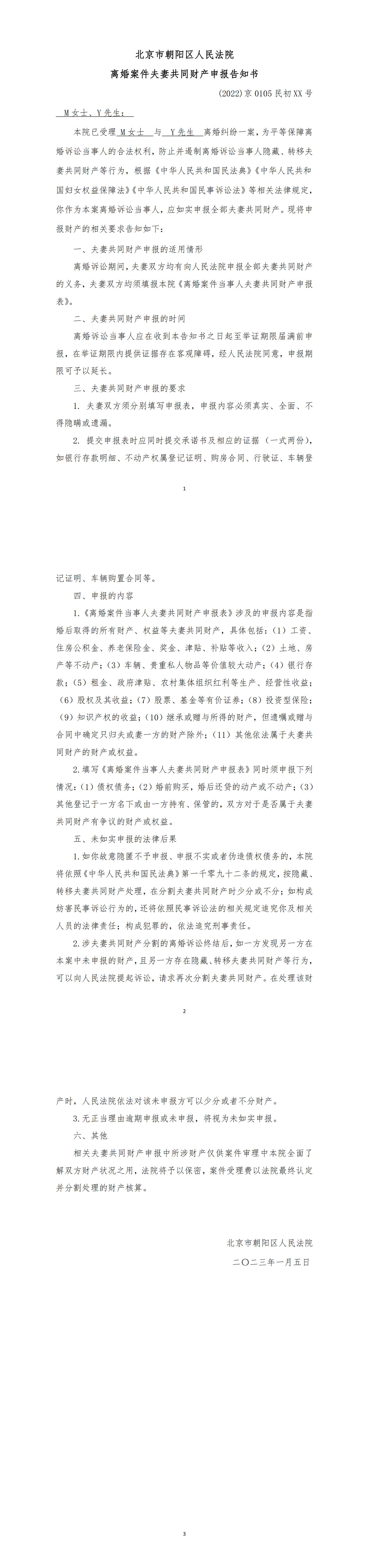 2023年1月5日,家理律师事务所收悉由北京市朝阳区人民法院下发的《夫妻共同财产申报告知书》,这是向家理承办的一起离婚纠纷案件的双方当事人发出的,也是在《中华人民共和国妇女权益保障法》(以下简称《妇女权益保障法》、新法)于2023年1月1日正式施行后,家理收到的首份《夫妻共同财产申报告知书》。