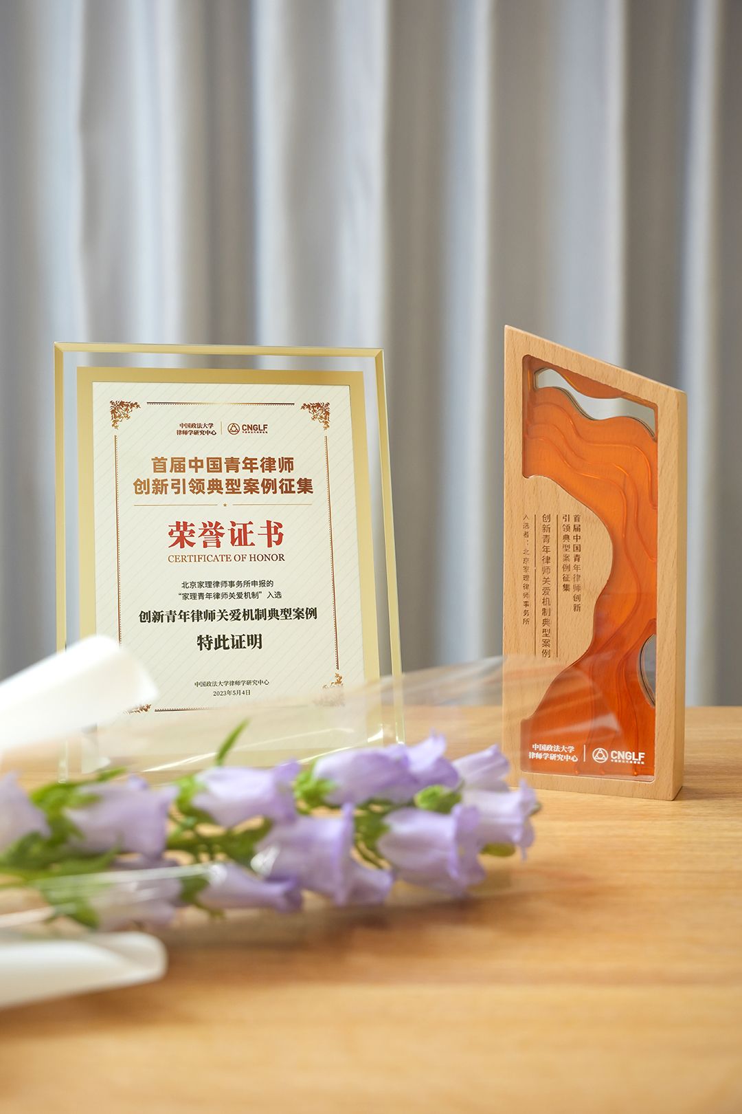 值得一提的是,每位获奖人除了获得奖杯、奖状外,还收到了一份特别的礼物——一株紫色的风铃草。风铃草的花语是创造力,寓意着百折不挠、生生不息的青年律师力量。
