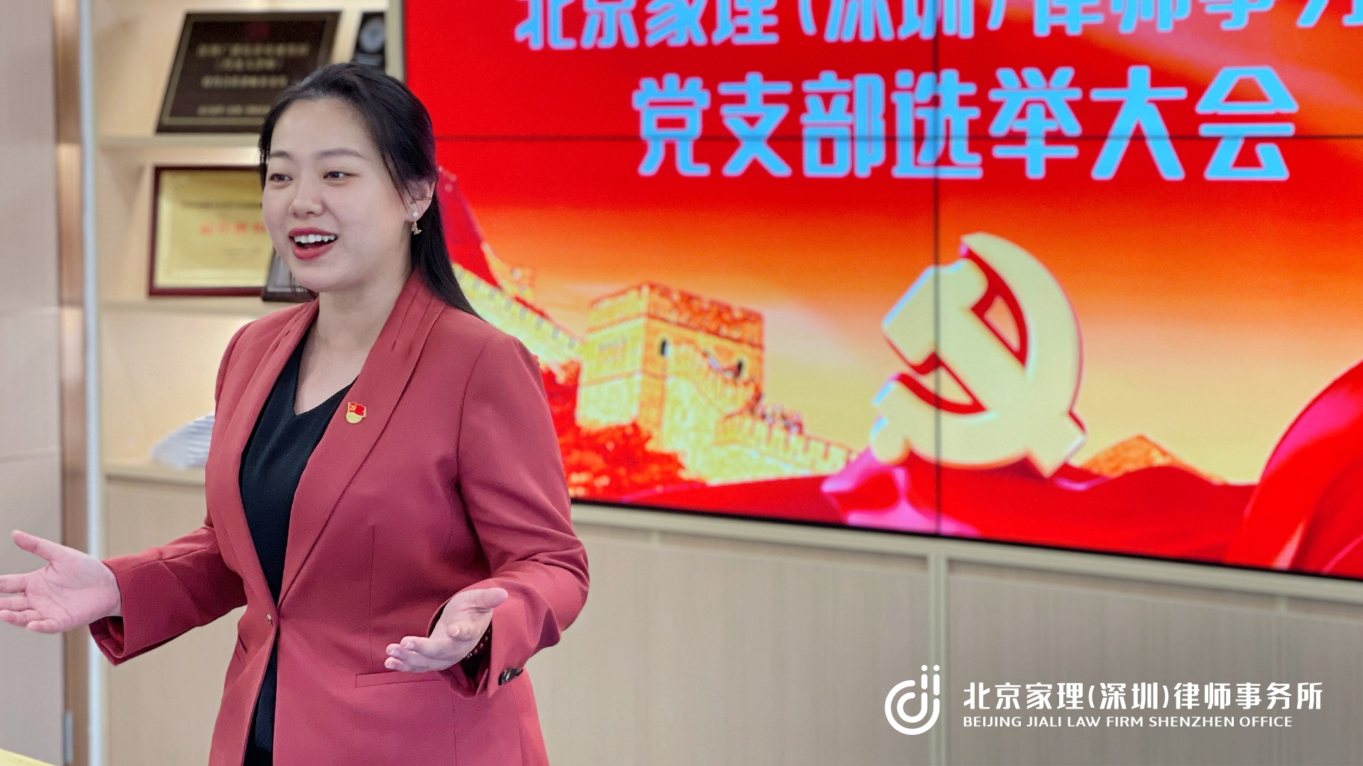 2022年10月12日,党的二十大召开之际,北京家理(深圳)律师事务所党支部选举大会胜利召开,北京家理(深圳)律师事务所主任胡梦蝶同志当选第一届党支部书记。