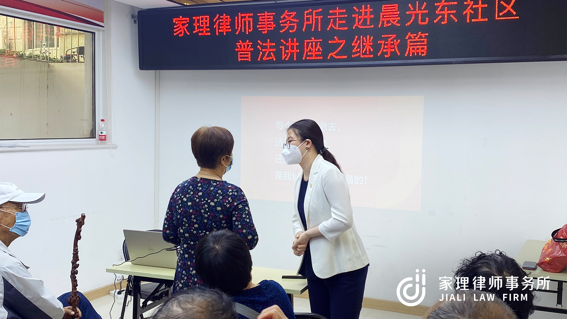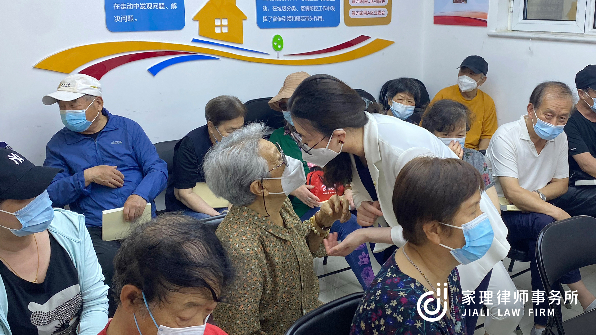 家理联合党支部党员律师丁婕为社区老年居民分享《民法典时代下传承的现实困境》的主题公益普法讲座,通过不同角度的详实案例,由浅入深的引导社区老年居民学习《民法典》婚姻家庭篇相关规定,获得六里屯晨光东社区居民的一致高度肯定。
