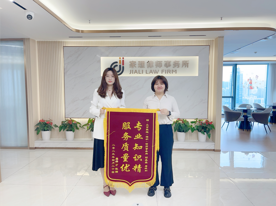 L女士肯定深圳家理婚家律师在承办案件过程中的专业态度与尽职尽责精神,故而赠送锦旗,以表示感谢。