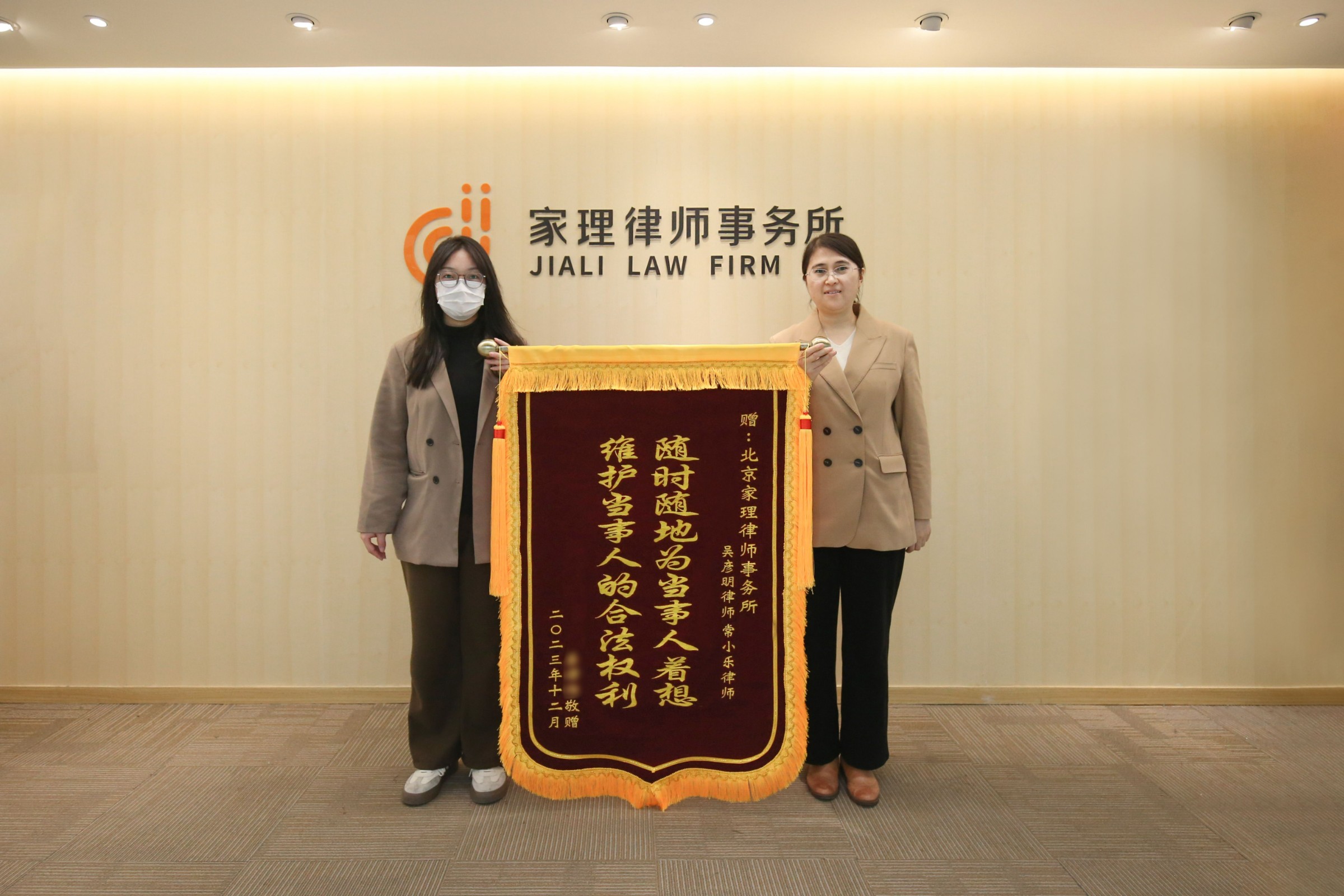 张先生对家理律师的专业能力和工作态度非常认可,特赠送锦旗一面。