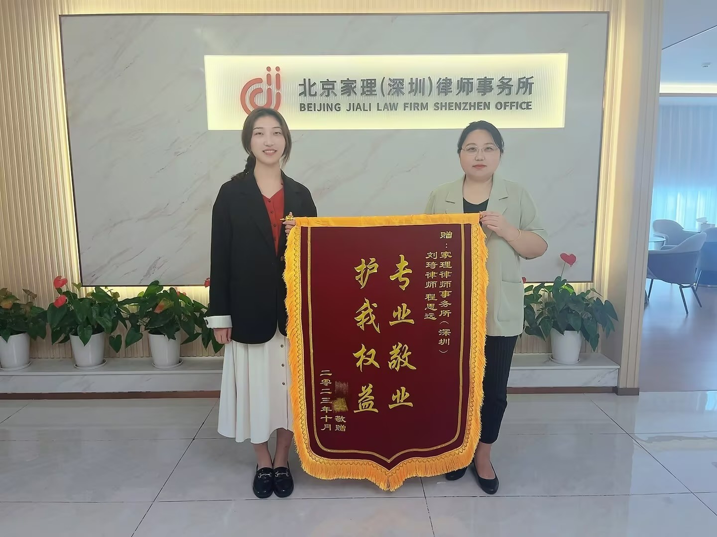 孟女士对案件结果非常满意,为感谢家理律师的优质服务和敬业精神,特赠送锦旗一面。