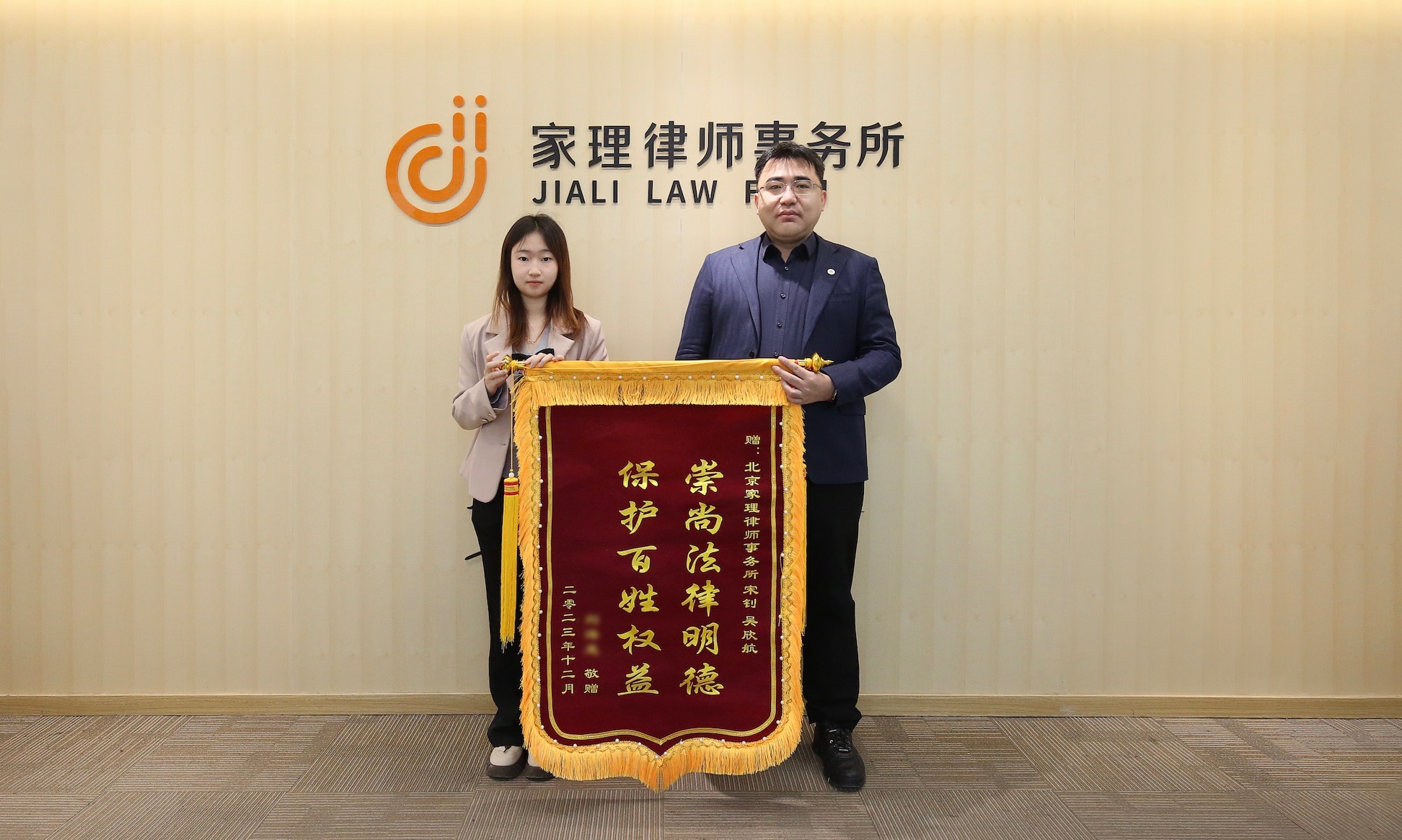 祁某一对家理婚家律师的专业与彻底解决纷争的态度予以认可,将载有“崇尚法律明德,保护百姓权益”的锦旗赠予家理婚家律师。