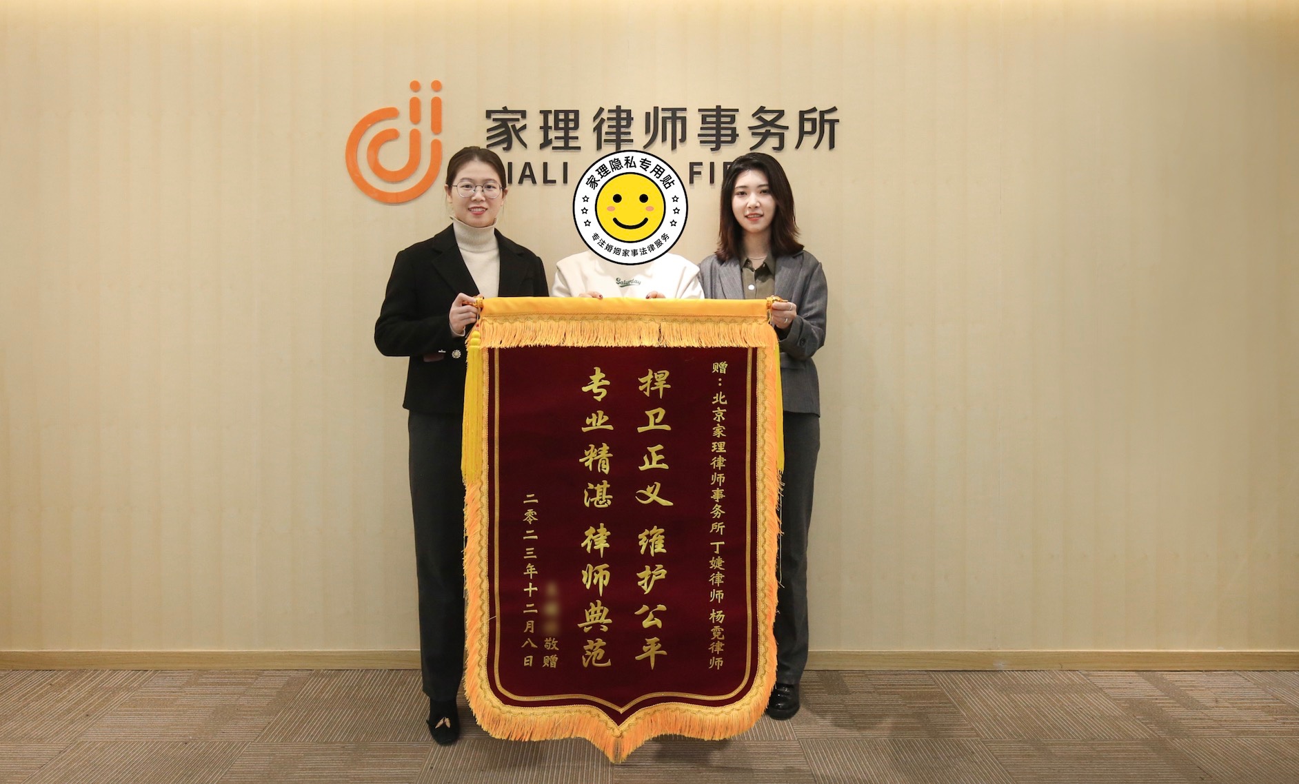 王女士为表示对家理婚家律师的认可与感谢,故而向家理婚家律师赠送锦旗。