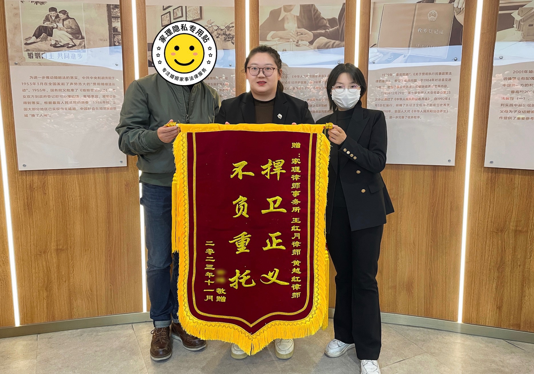 方先生对家理婚家律师在工作中的认真、负责表示认可,特赠送锦旗以表示感谢。
