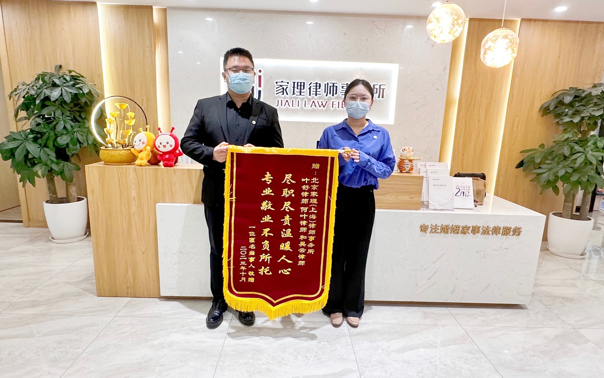 雷女士最终获得了一次性补偿款,对上海家理的何律师、叶律师在承办案件过程中的耐心与专业给予高度肯定,故而赠送锦旗。