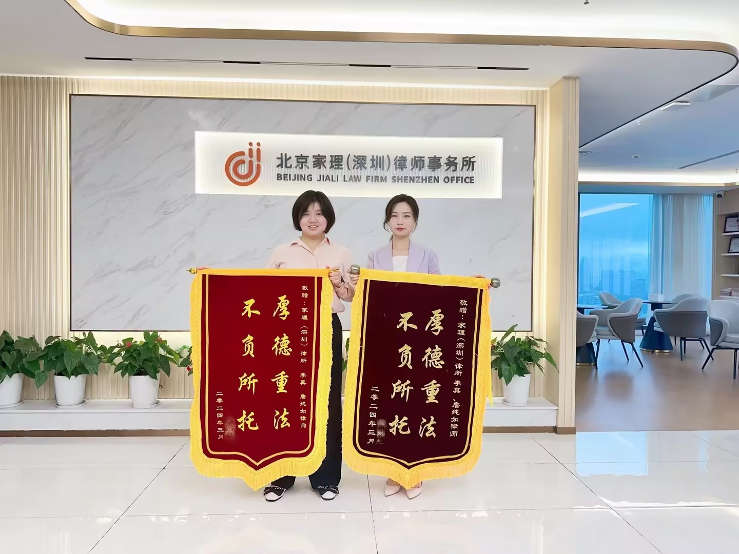 案件经过一审、二审,均取得圆满结果,为表示感谢,尚先生特意到家理律所,为家理婚家律师赠送锦旗。