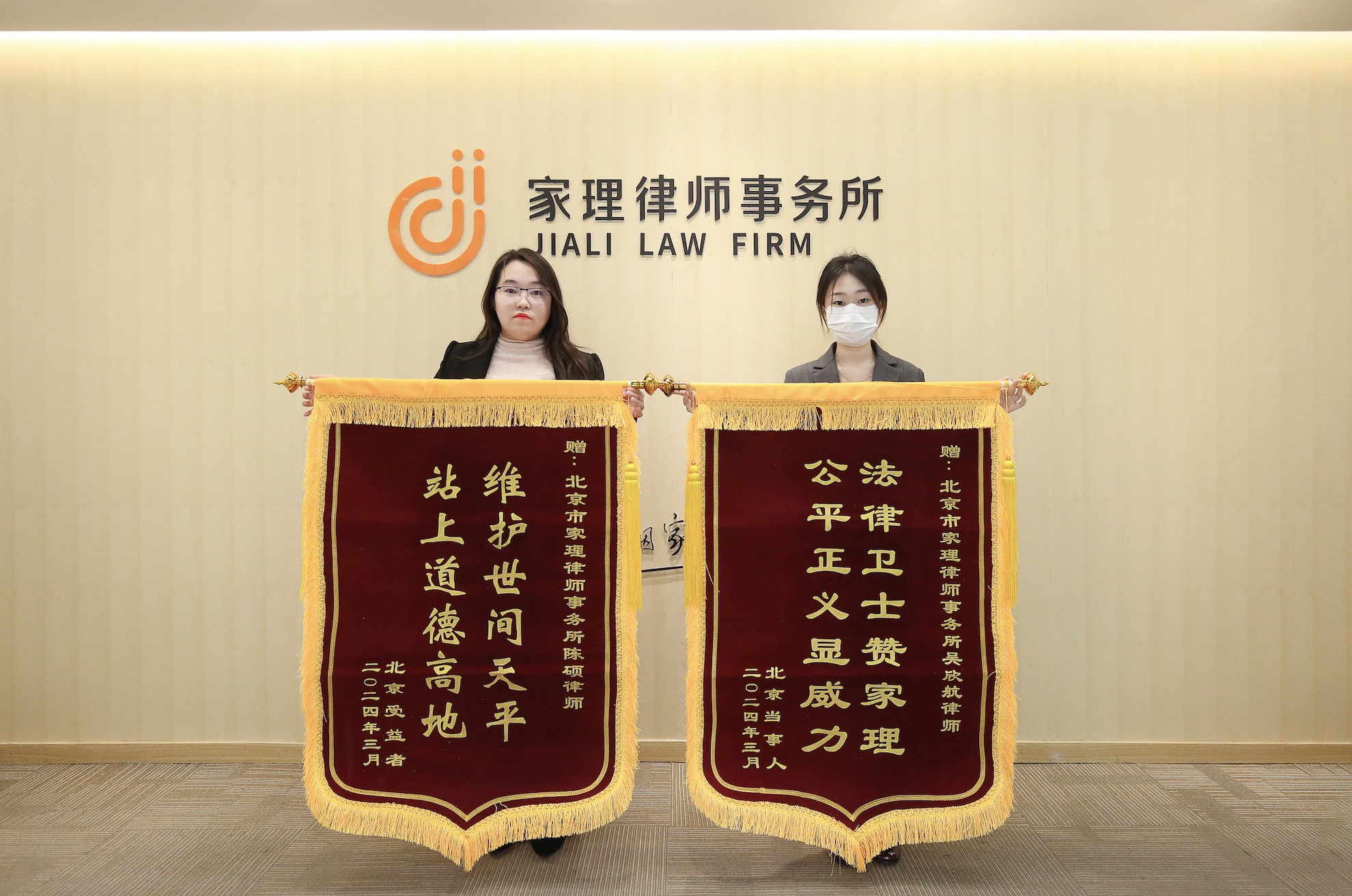 陈女士对于一审判决结果十分满意,并对家理婚家律师勤勤恳恳的敬业精神和精湛的专业能力表示认可,特意到家理律所赠送锦旗。