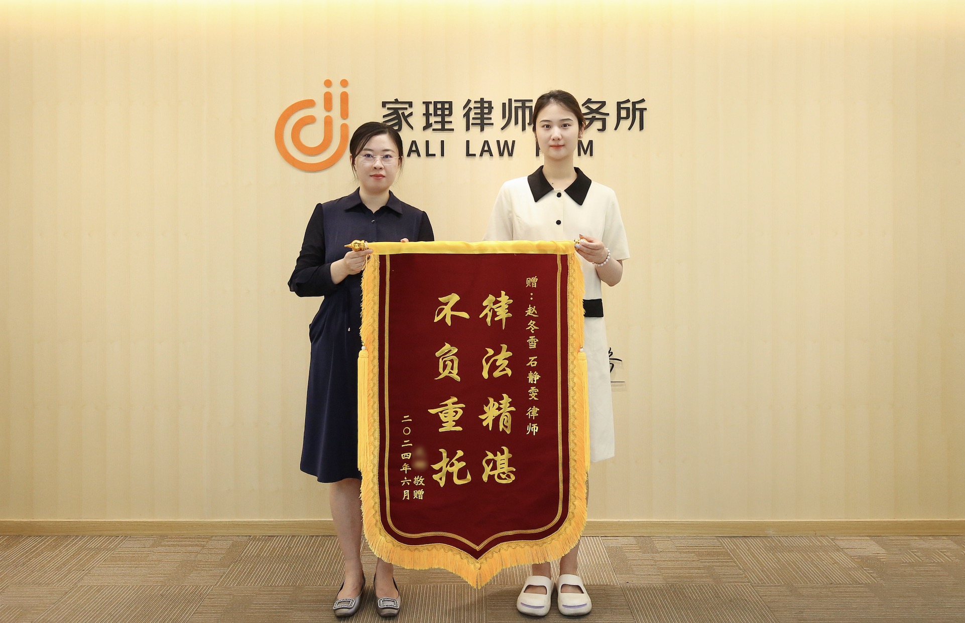 文女士的诉求全部得以实现,为表示感谢,特意为北京家理的赵冬雪律师、石静雯律师赠送锦旗。